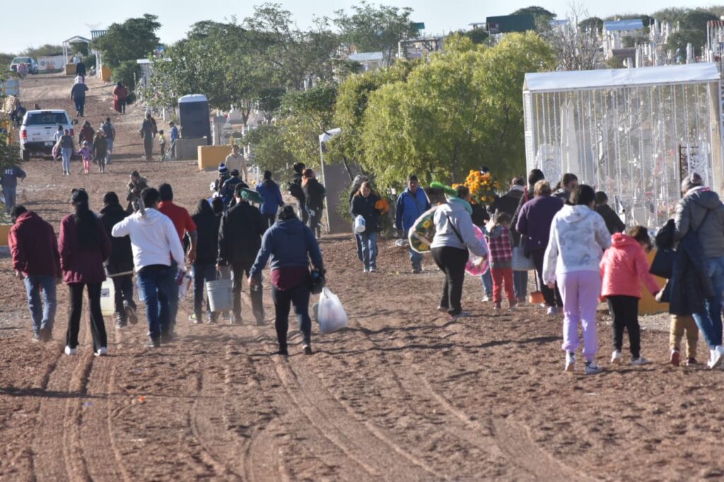 Ciudad Juárez.-Ante las festividades del Día de muertos, miles de juarenses se han reunido en los diferentes panteones municipales como el panteón Chaveña, Colinas de Juárez y San Rafael.