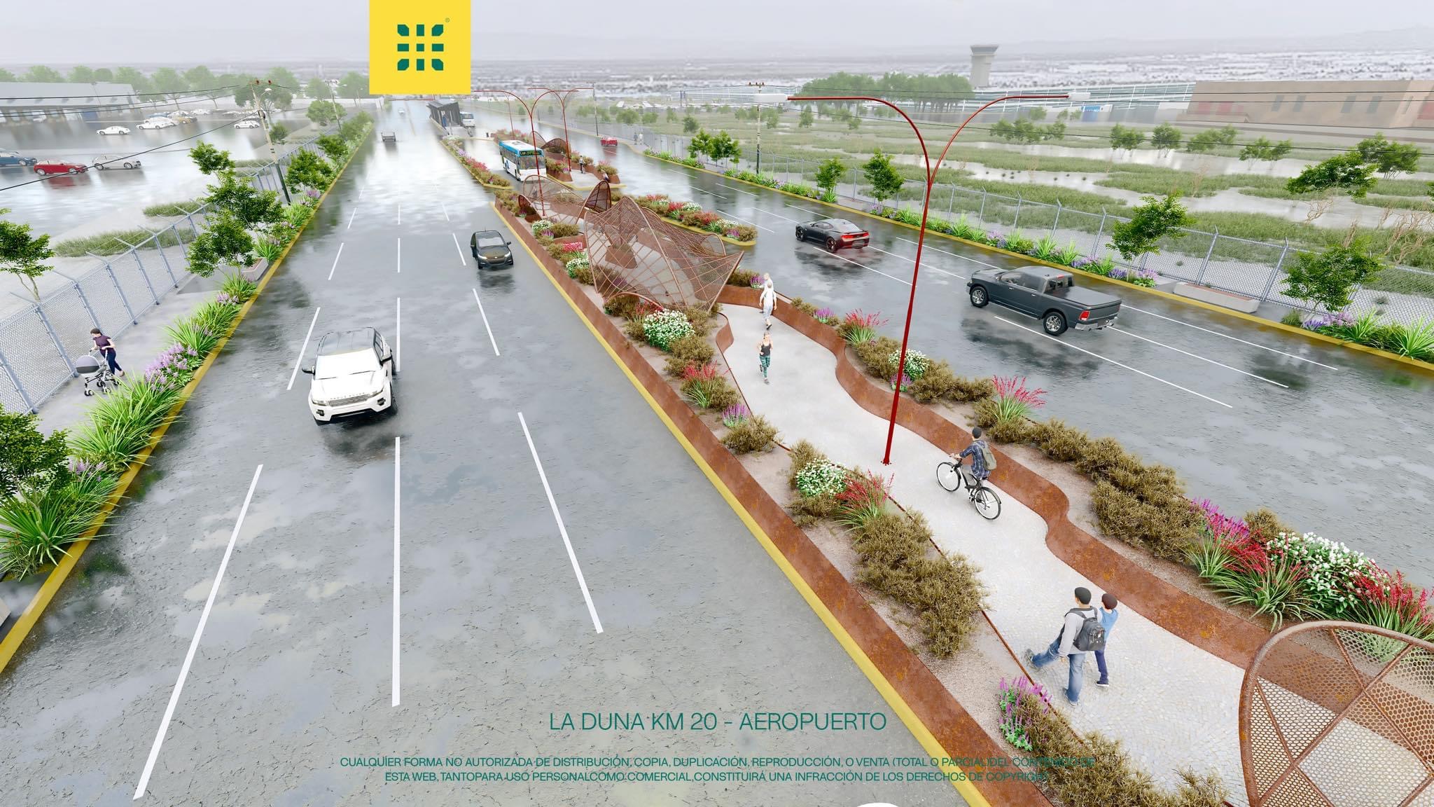 Con el proyecto “La Duna”, el cual fue diseñado por el arquitecto Juarense, Miguel Eduardo Vargas, se busca embellecer este tramo de la ciudad con un parque lineal el cual estará conformado por jardineras llenas de plantas de la región y de bajo mantenimiento. Además de que tendrá una estructura gigante que cubriría ambos carriles con la forma de las famosas Dunas de Samalayuca.
