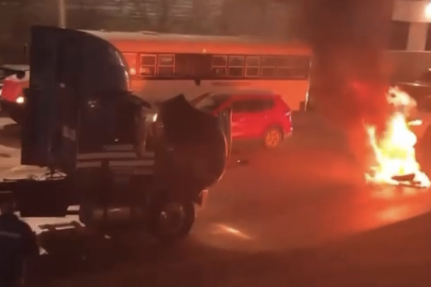 El derrape generó chispas y el combustible inflamó la moto, desencadenando un incendio. Con lesiones graves, el joven fue trasladado de urgencia al IMSS 66.