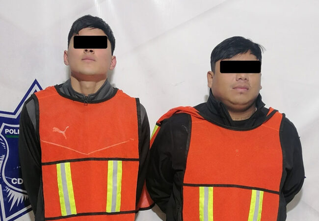 Agentes de la Secretaría de Seguridad Pública Municipal arrestaron a Alberto L. C. y Luis A. T., por su presunta responsabilidad en la comisión del delito de robo a peatón con violencia.