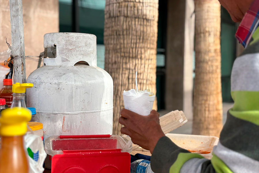 A pesar de las dificultades, Don Raymundo conserva la sonrisa que tanto lo caracteriza. Día a día, deleita a quienes realizan trámites en estas oficinas con sus deliciosos elotes, que prepara con mucho amor para sus clientes.