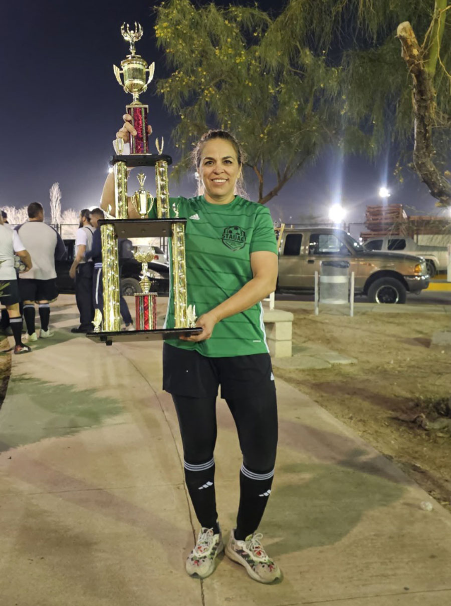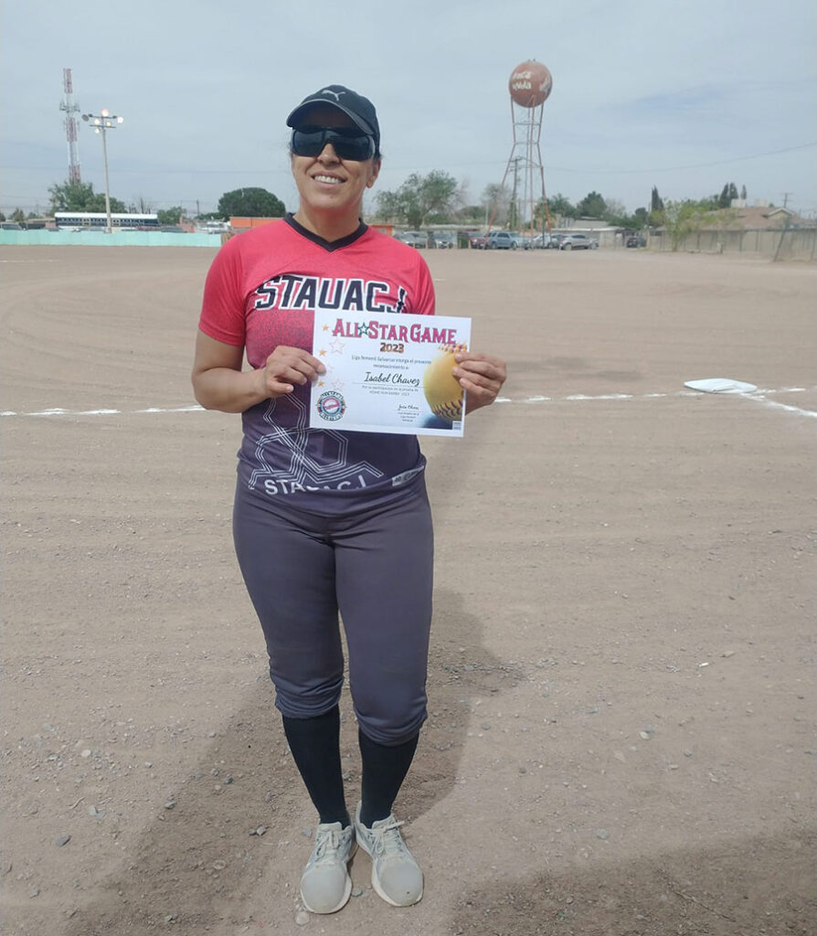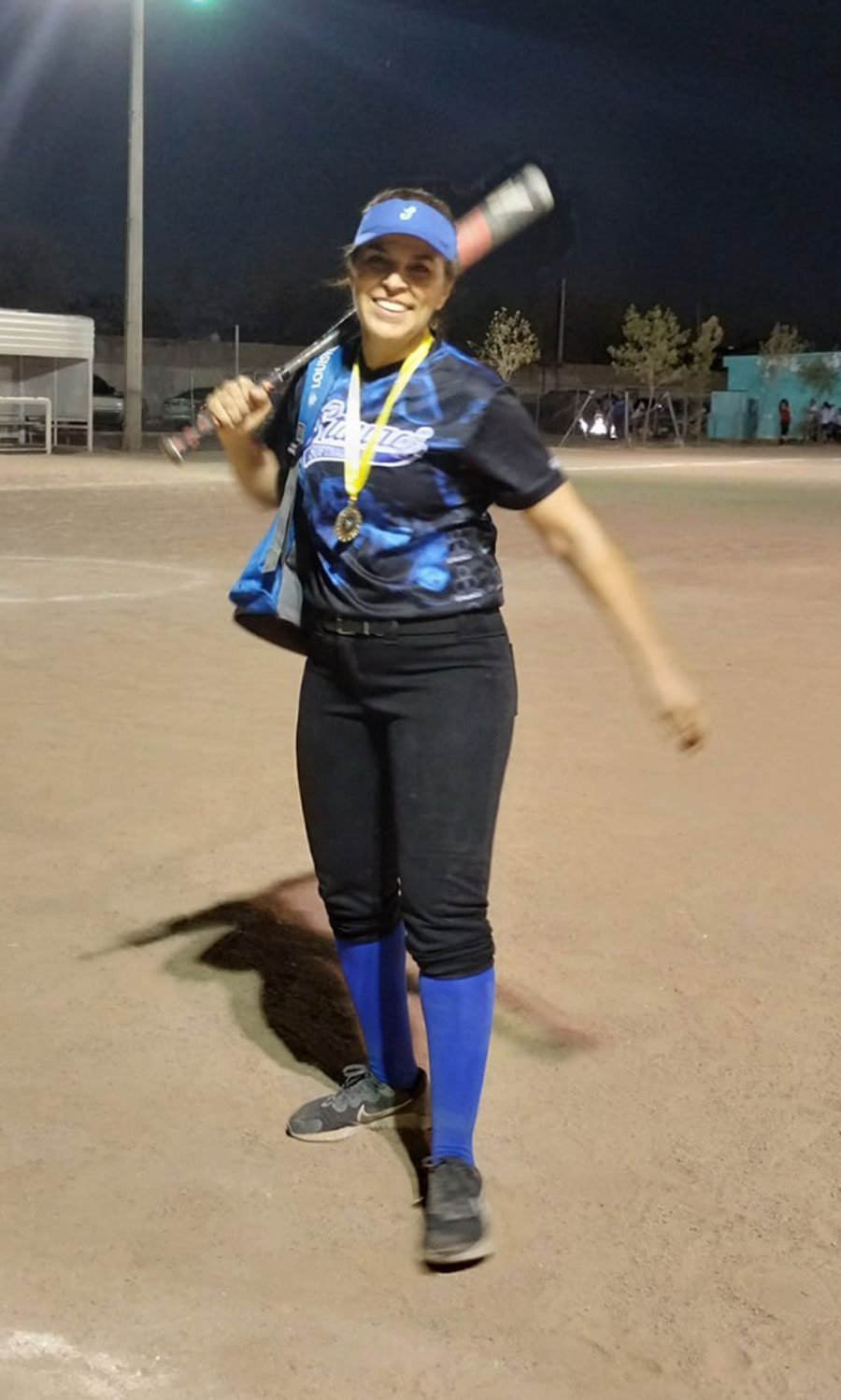 (IC): Actualmente trabajo como administrativa en la Universidad Autónoma de Ciudad Juárez, soy madre de familia, pero continúo practicando deportes y pude volver al deporte de competencia, pertenezco al equipo de softball del sindicato de trabajadores de la UACJ.