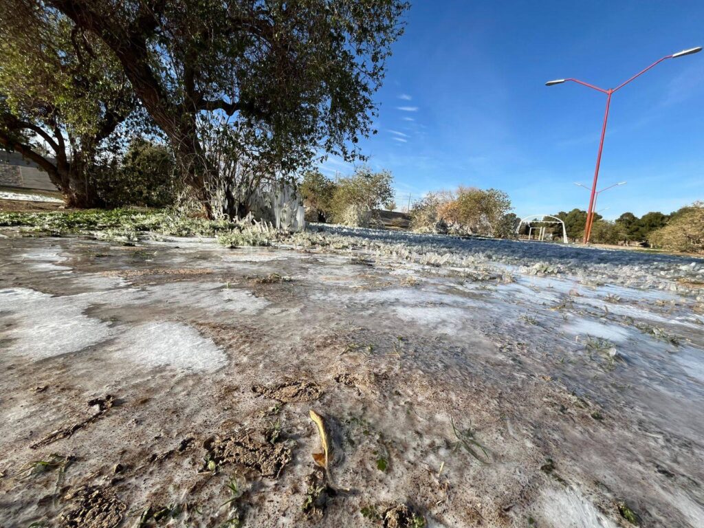 Además, delgadas capas de hielo se acumularon sobre el césped, dando un aspecto invernal al paisaje. A las 9:15 de la mañana, el termómetro marcaba -1 grado centígrado. (Fotos: Gabriel Barraza)