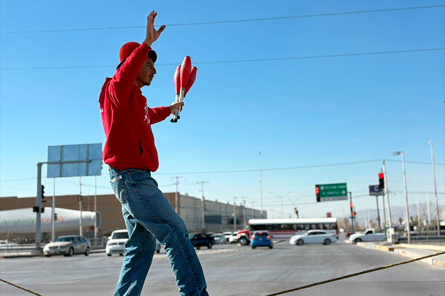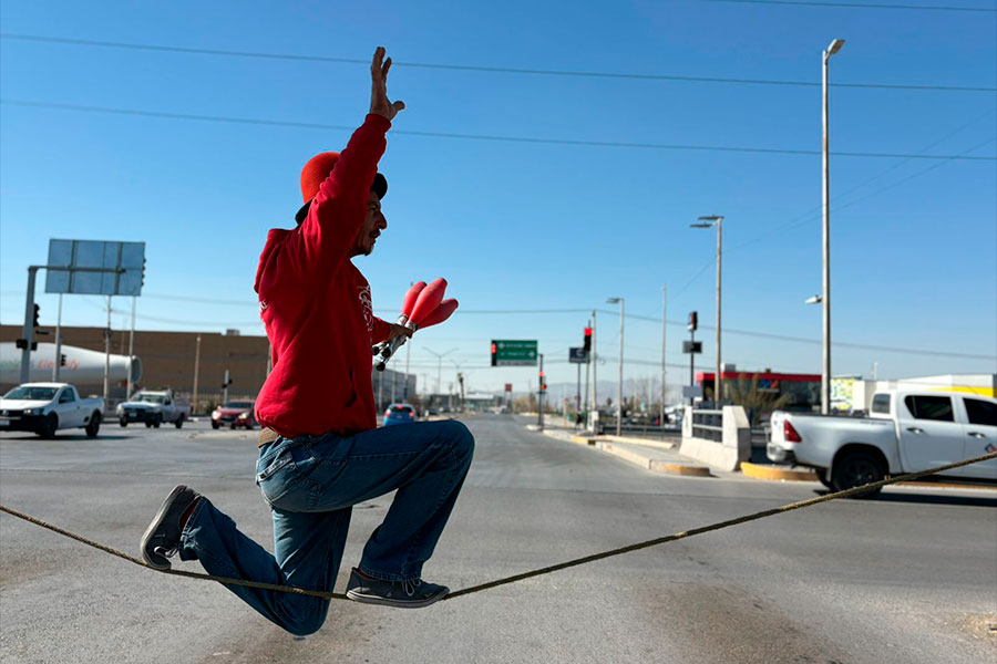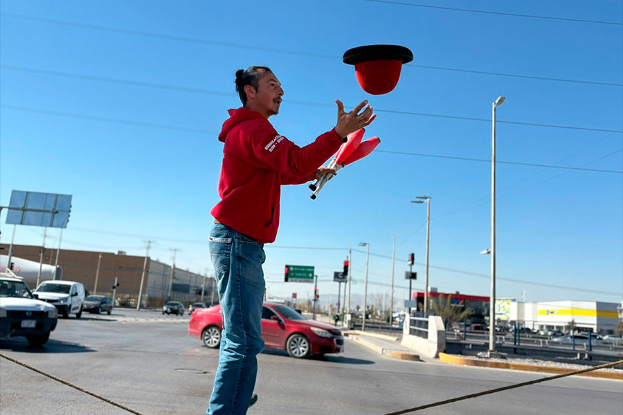 En Ciudad Juárez, es común verlo en la intersección de Avenida de las Torres y Ramón Rayón, desafiando la gravedad mientras hace malabares sobre una cuerda. Su habilidad y carisma transforman cada acto en un espectáculo inolvidable para quienes tienen la suerte de presenciarlo.