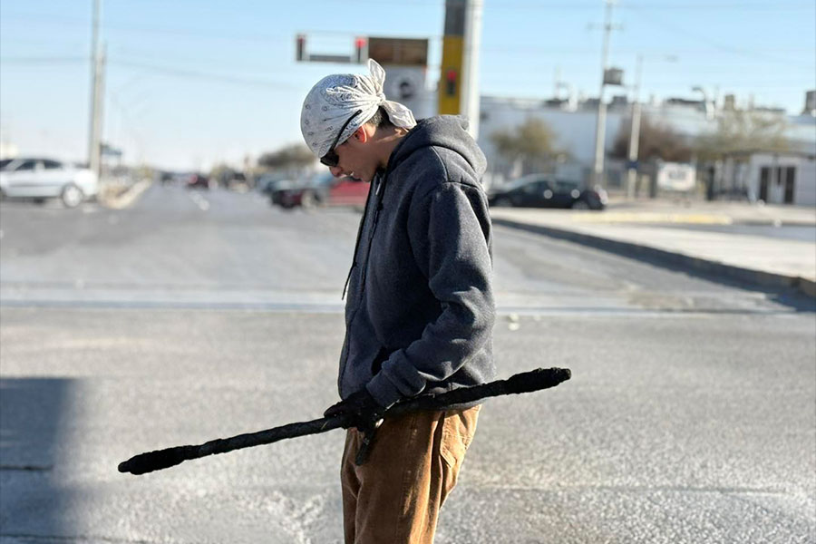 En la intersección de Santiago Troncoso y el Libramiento, Emmanuel, un joven juarense, impresiona con su talento en el arte urbano.