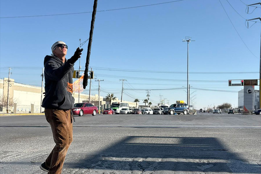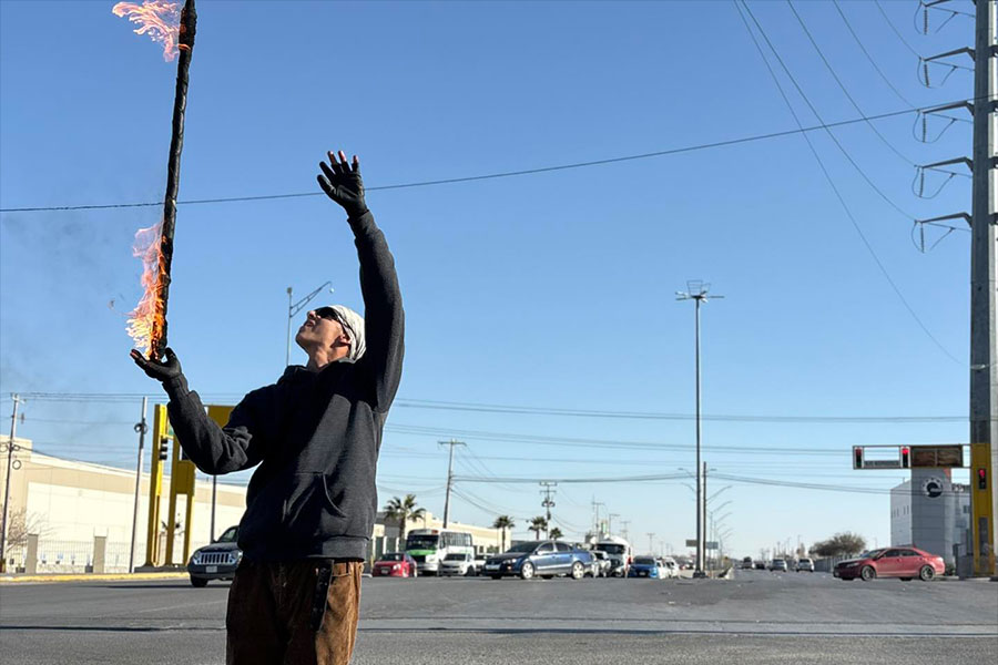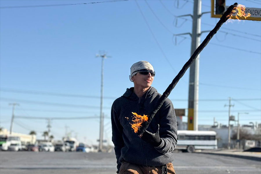Emmanuel, el joven que domina el fuego en las calles de Juárez