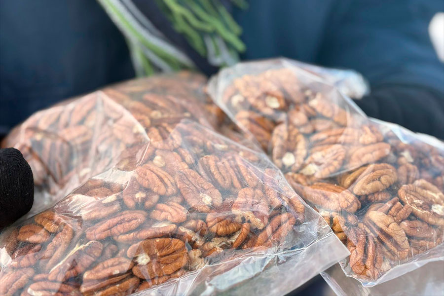 Don Emir, un juarense de 46 años, lleva más de 10 años vendiendo nueces en la intersección de Francisco Villarreal y Ejército Nacional, un trabajo con el que ha sacado adelante a su familia.