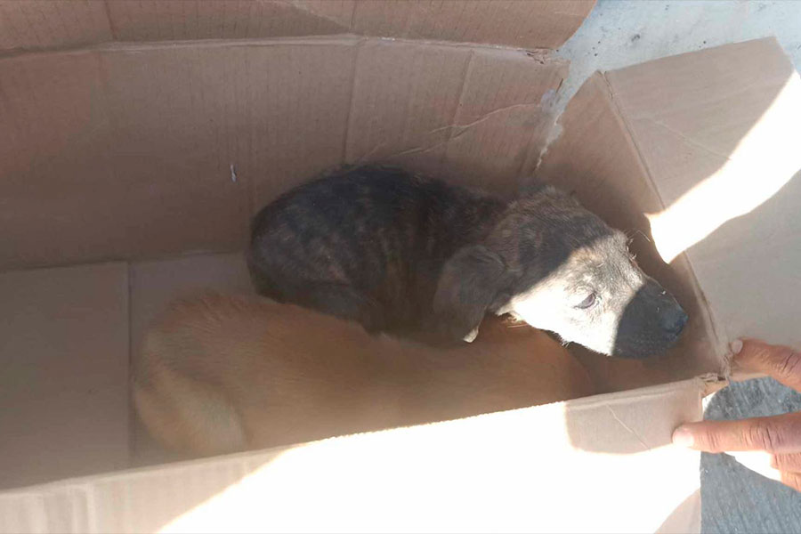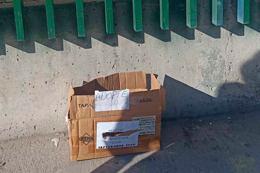 Una perrita en situación de abandono dio a luz a ocho cachorros, y la señora los resguarda en una cajita con un letrero que dice: “Adoptame, necesito un hogar donde me quieran”. Su objetivo es protegerlos del peligro en la vía pública y animar a quienes pasan por ahí a brindarles una oportunidad.