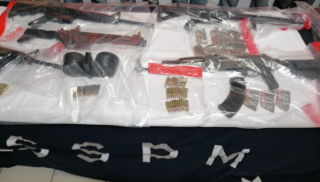 En el operativo, los agentes localizaron a varios individuos armados dentro de una vecindad, y durante la inspección, hallaron un cadáver envuelto en una cobija y una granada de fragmentación. También se aseguraron cinco fusiles de asalto y diversos cartuchos útiles.