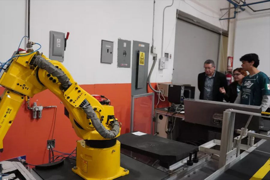 La ceremonia incluyó un recorrido por los laboratorios de robótica de la Universidad, en el que mostraron el nuevo brazo robótico KUKA KR10 R900-2, como parte del proyecto del Centro de Capacitación en Robótica Aplicada.