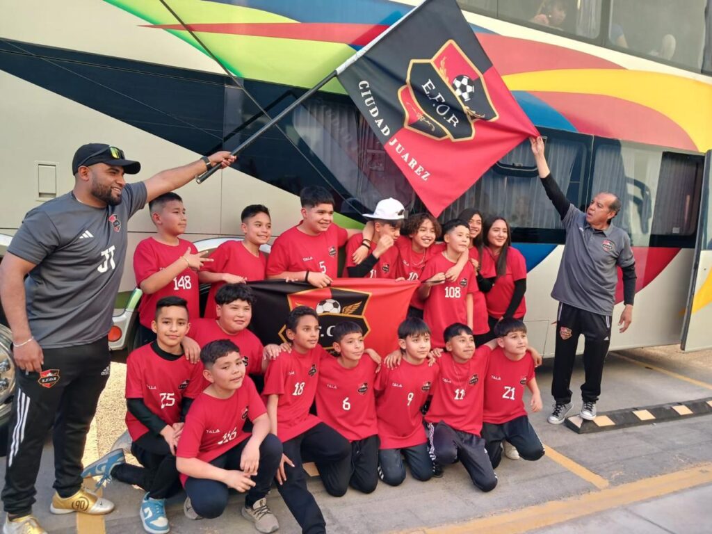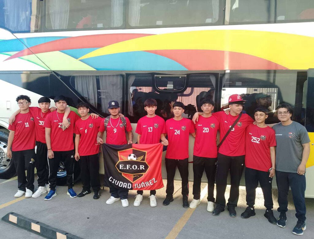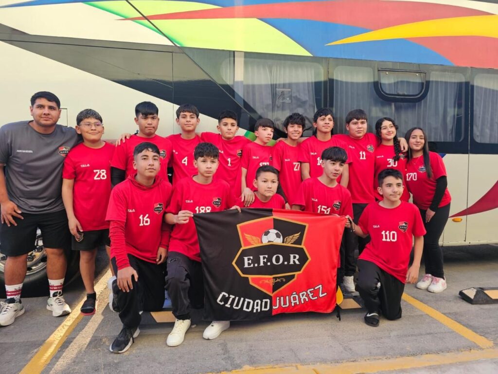 Jugadores de la Escuela de Futbol Oasis Revolución (EFOR) se dirigieron a León, Guanajuato, para representar Ciudad Juárez en la Copa Nacional León AM que iniciará el día de mañana, 23 de abril.
