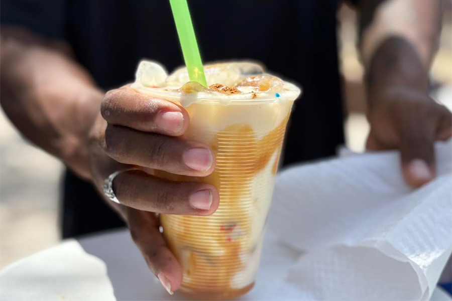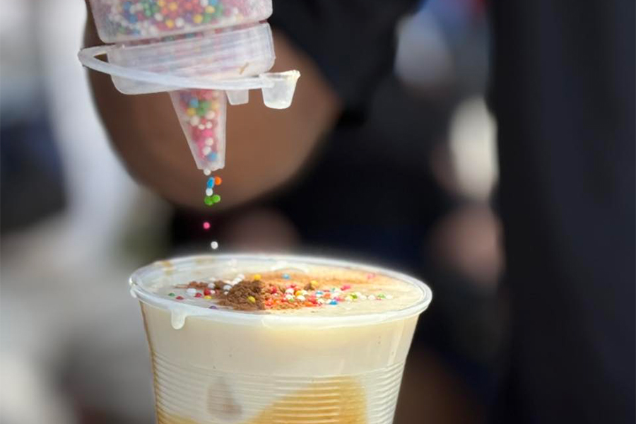 Brayan Quintan un joven venezolano de 24 años, se encargó de preparar un postre típico de Venezuela. “La Chicha venezolana” se puede comparar con un batido. Hielo, pasta o spaghetti, leche, canela, mucho amor y mucha precisión, son los ingredientes bases para preparar este manjar, y como ingredientes extra, Brayan te ofrece lechera, entre otros endulzantes.