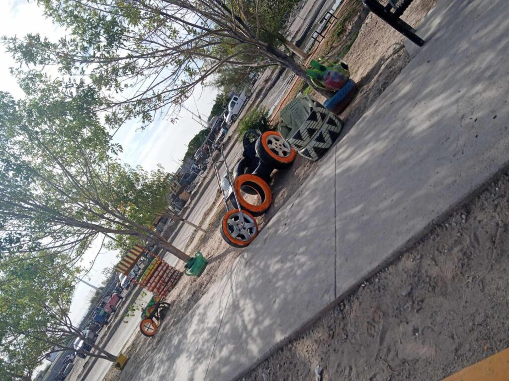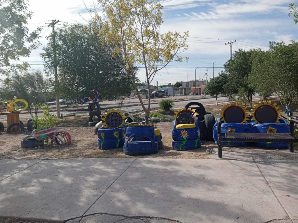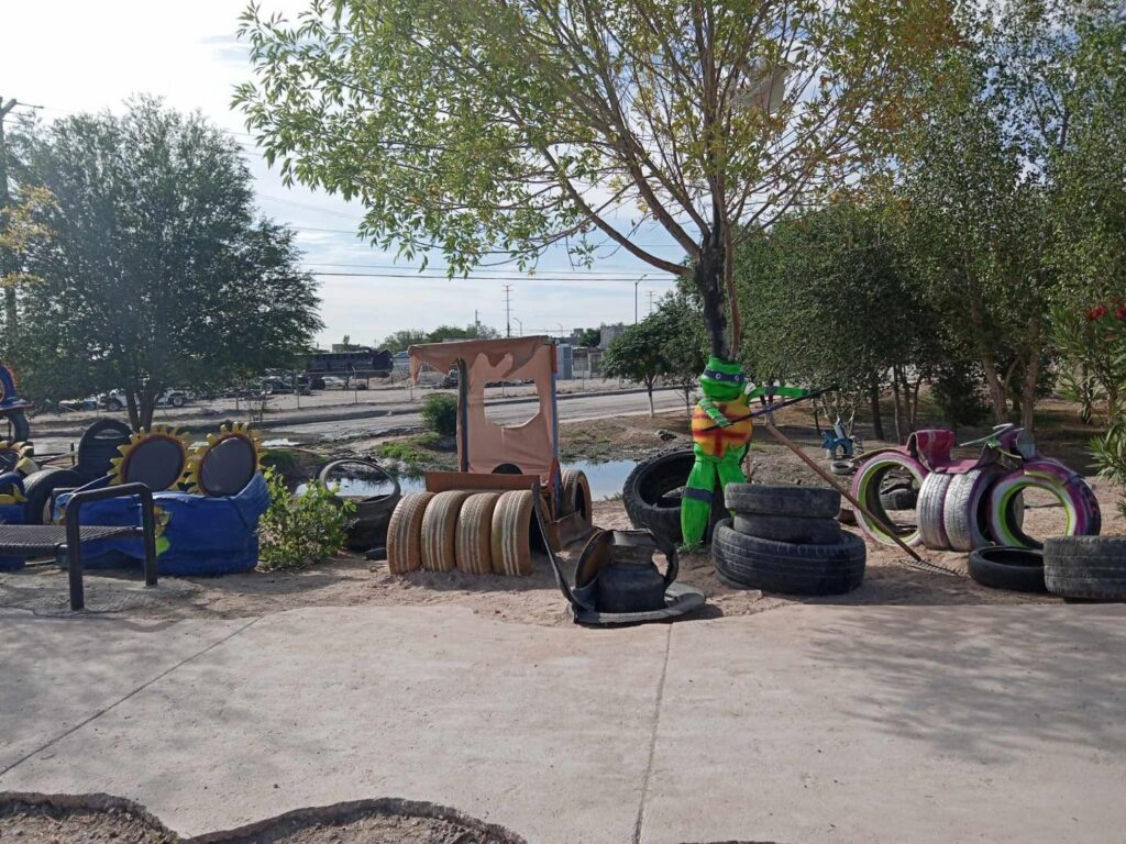 El juarense Julián Camargo, con mucho entusiasmo y dedicación ha hecho diferentes figuras con llantas, dándole otra vista al parque de su colonia, haciendo la diferencia al no quedarse con los brazos cruzados.