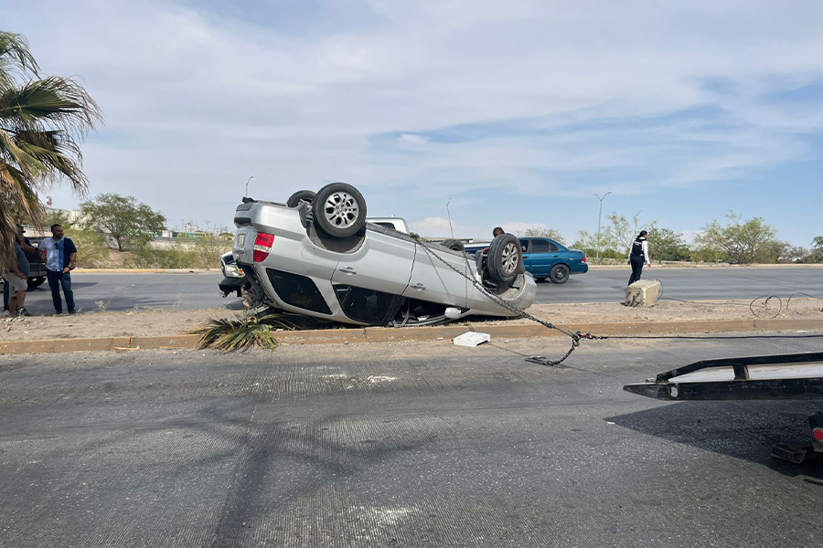 Una camioneta Acura MDX de color gris, se volcó esta tarde al perder el control mientras circulaba por el bulevar Francisco Villarreal Torres, cerca del cruce con el puente Centauros.