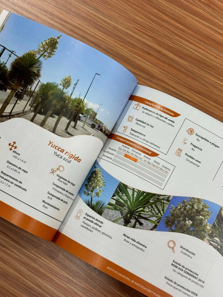 En las páginas del libro se explica qué tipo de plantas y árboles pueden adaptarse al clima de la frontera y cómo cuidarlos, además de compartir detalles como el espacio que se debe de considerar para cada árbol, su comportamiento por temporadas, características básicas y el espacio donde se debe de ubicar.