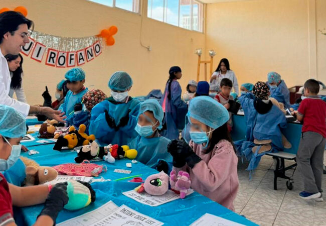 Alumnos integrantes de la Asociación de Estudiantes Médicos de la UACJ, se unieron para organizar una colecta de peluches y muñecos, los cuales fueron para los niños de una primaria, esto con el fin de combatir el síndrome de bata blanca, es decir, el miedo que los niños le tienen a los médicos y a los procedimientos.