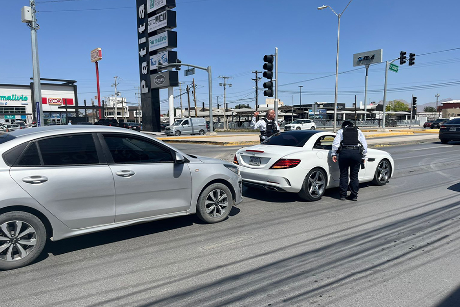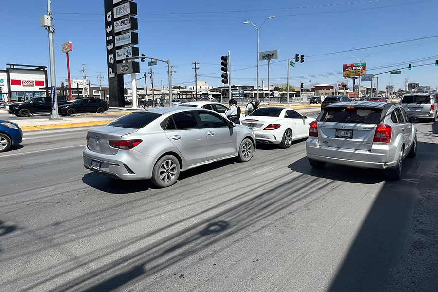 Dos choques por alcance se registraron de manera simultánea la mañana de este lunes en el cruce de las calles De la Labranza y avenida Tecnológico, sin que se reportaran personas lesionadas.