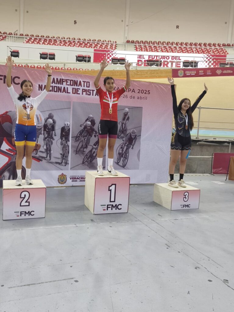 Yaretzi Aguirre Ávila del Cobach 6 se vuelve campeona nacional en el Campeonato Nacional de Ciclismo de Pista en el Velódromo Internacional de Xalapa.