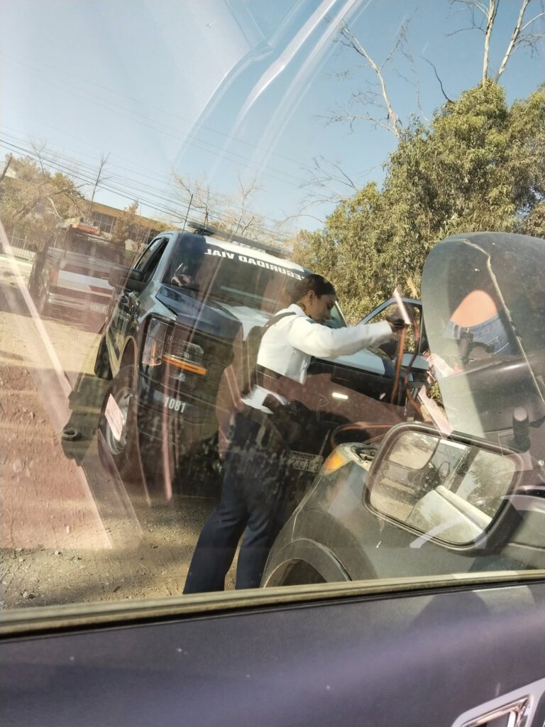 Comenta que fue cerca del Colegio de Bachilleres No. 19 donde el tránsito que está en una esquina le ayudó a salirse de la fila y le marcó a una unidad de Seguridad Vial para que le ayudara, quienes se quedaron hasta asegurarse de que funcionara su camioneta, además de que fueron muy amables.