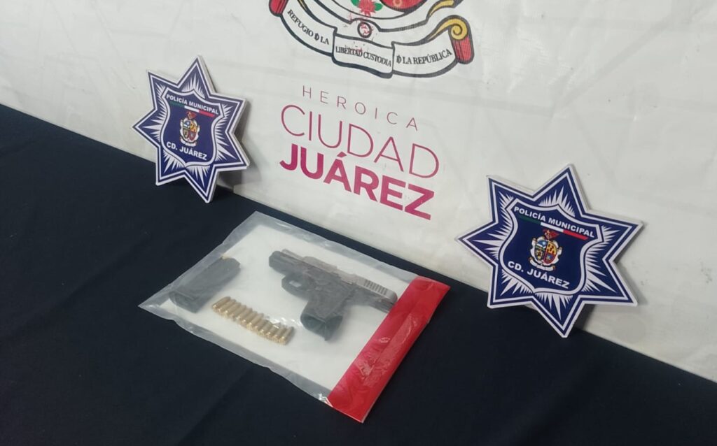 Al ser abordado por los agentes, se le localizó un arma calibre 9 milímetros fajada a la cintura, con un cargador abastecido con 12 cartuchos útiles, por lo que fue detenido de inmediato.