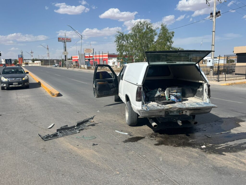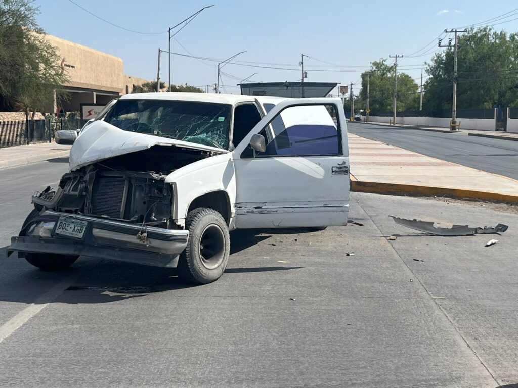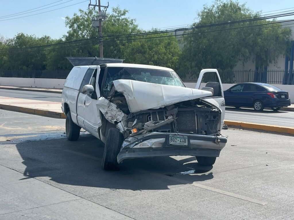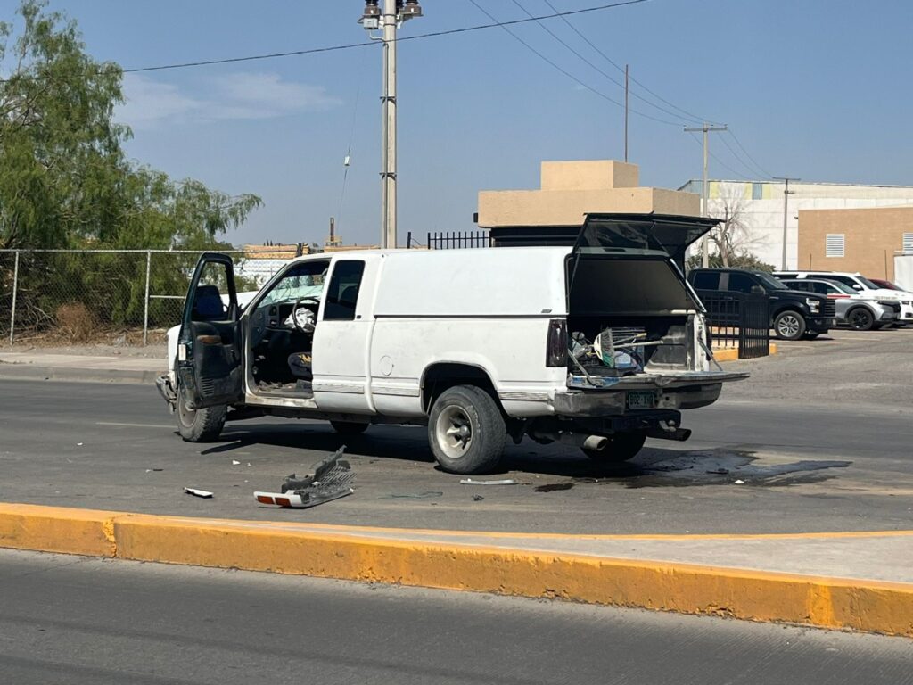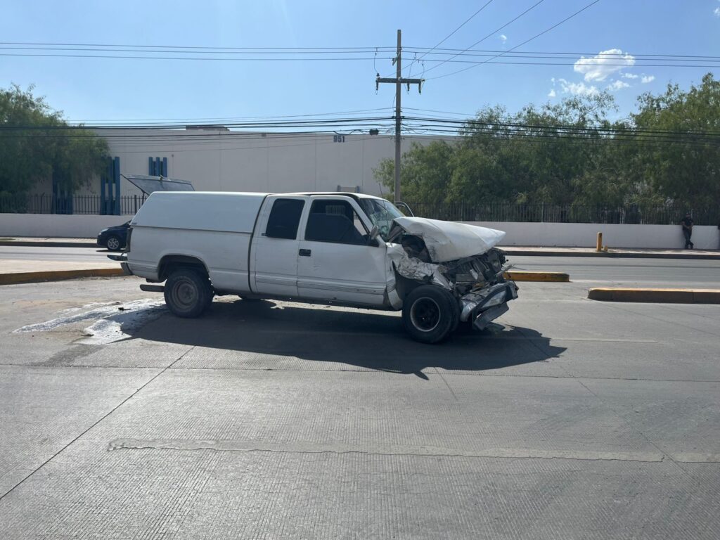 Un choque entre una camioneta tipo Silverado con placas del estado de Colorado y un camión de transporte de personal se registró la tarde de este miércoles sobre la avenida Antonio J. Bermúdez, frente a la empresa Stoneridge.
