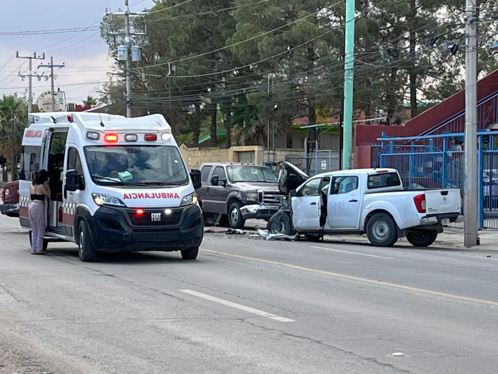Un fuerte choque entre tres vehículos se registró este jueves sobre la avenida De los Insurgentes, entre las calles Efrén Ornelas y Francisco Márquez, en el fraccionamiento La Joya.