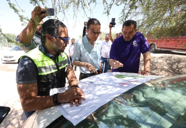 Esta mañana, el presidente municipal Cruz Pérez Cuéllar visitó la presa de Anapra, donde se contempla iniciar próximamente la construcción del nuevo Parque Norponiente, un espacio deportivo pensado para beneficio de los habitantes del sector.
