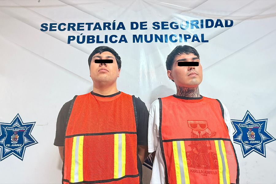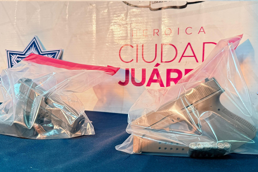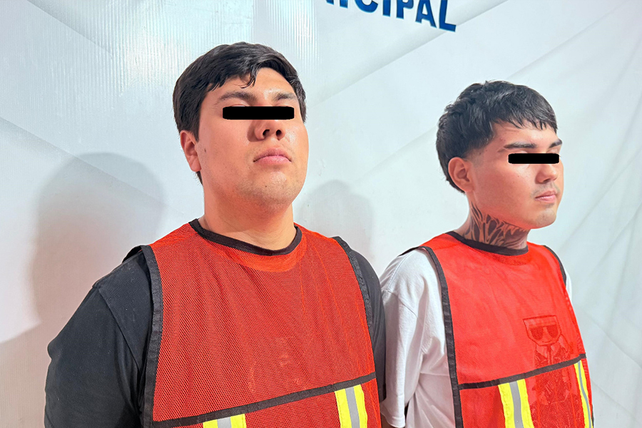 Dos hombres fueron detenidos por agentes municipales tras ser sorprendidos en posesión de armas de fuego calibre 9 milímetros, durante un recorrido de vigilancia en calles de la colonia Salvárcar.