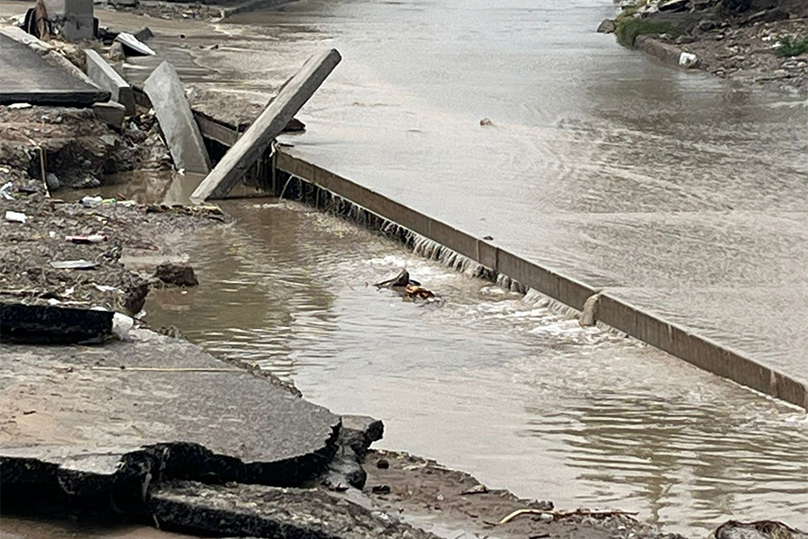 La acumulación de agua en el cruce de las calles José Juan Méndez y Santiago provocó una especie de represa o remolino que arrastró múltiples objetos y vehículos, algunos ya identificados por sus dueños.