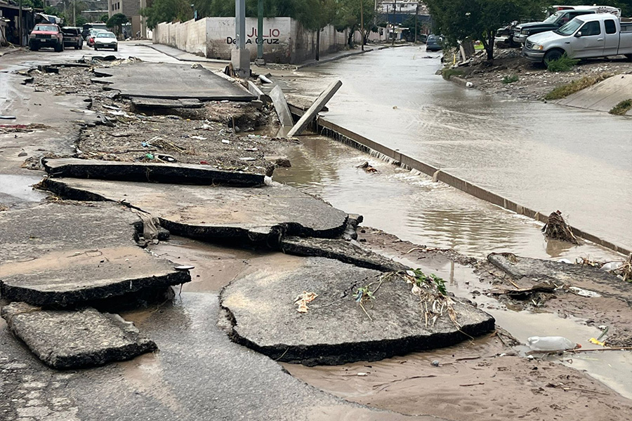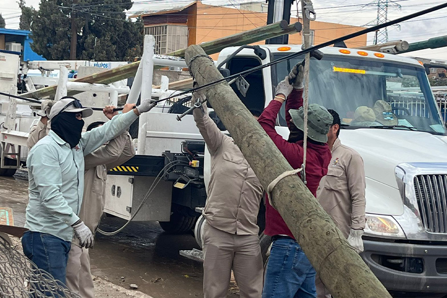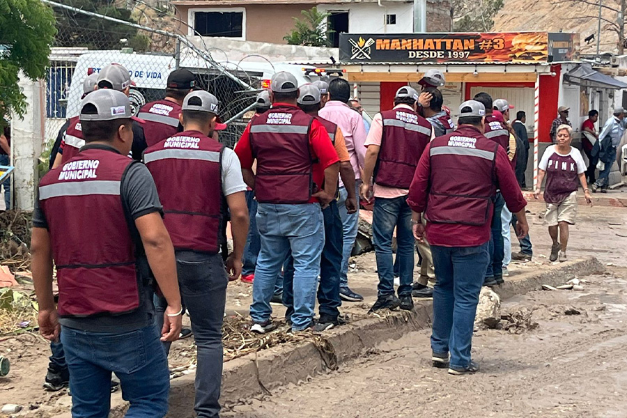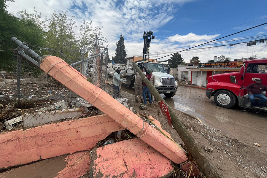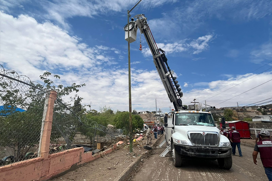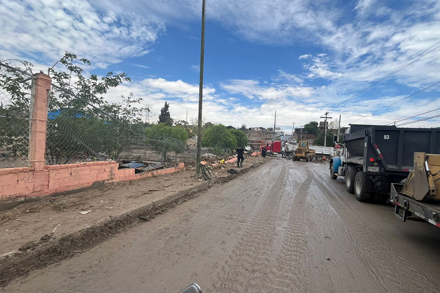 Desde temprana hora, personal de Obras Públicas, Alumbrado Público, Limpia, Protección Civil, Seguridad Pública, Seguridad Vial, Auxilio Vial y Servicios Públicos trabajan de forma coordinada para retirar el fango, basura, yerba, postes y cableado eléctrico que quedaron esparcidos por la zona.