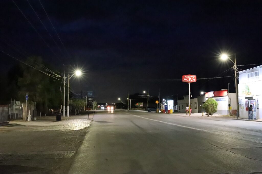 Los trabajos incluyeron la instalación de 370 luminarias tipo LED, mantenimiento a 32 lámparas existentes, colocación de dos gabinetes de control, 13 arbotantes de 12 metros de altura y la rehabilitación de 800 metros de red eléctrica con cableado aéreo.