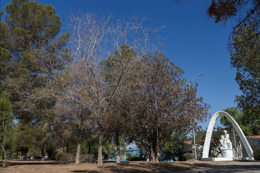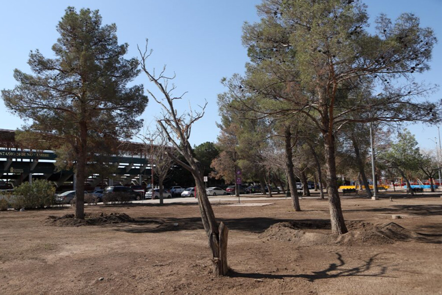 El Parque Borunda perdió 30 árboles maduros debido a la falta de riego, el exceso de calor y la aparición de plagas, informó Daniel Zamarrón, director de Parques y Jardines.
