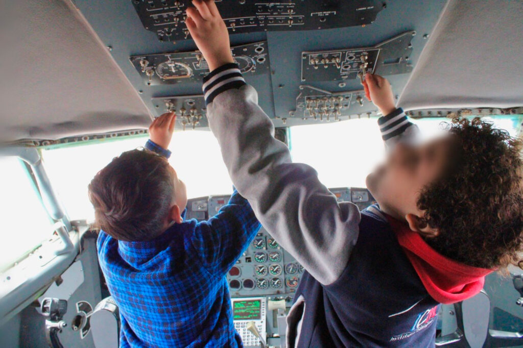 Niños y adolescentes tienen la oportunidad de ingresar a la cabina y tomarse fotografías, mientras que el capitán a cargo tiene como tarea brindarles un recorrido por el lugar