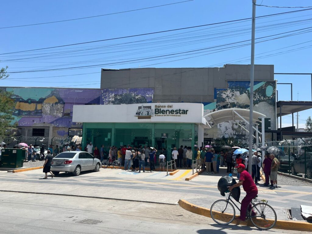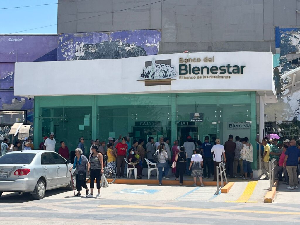 Con temperaturas que superan los 35 grados centígrados y alta humedad provocada por las recientes lluvias, adultos mayores tuvieron que soportar más de una hora de espera bajo el sol para cobrar su pensión en el Banco del Bienestar ubicado sobre la calle Ignacio Mariscal en la Cona Centro.