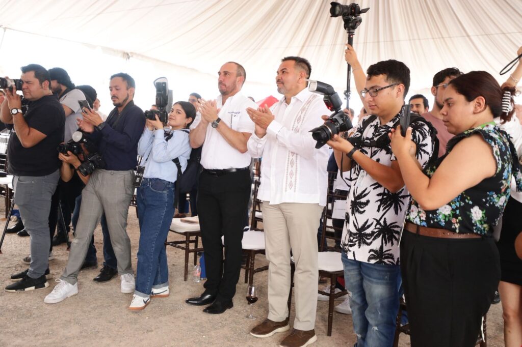 El presidente municipal, Cruz Pérez Cuéllar, participó como invitado especial en la colocación de la primera piedra