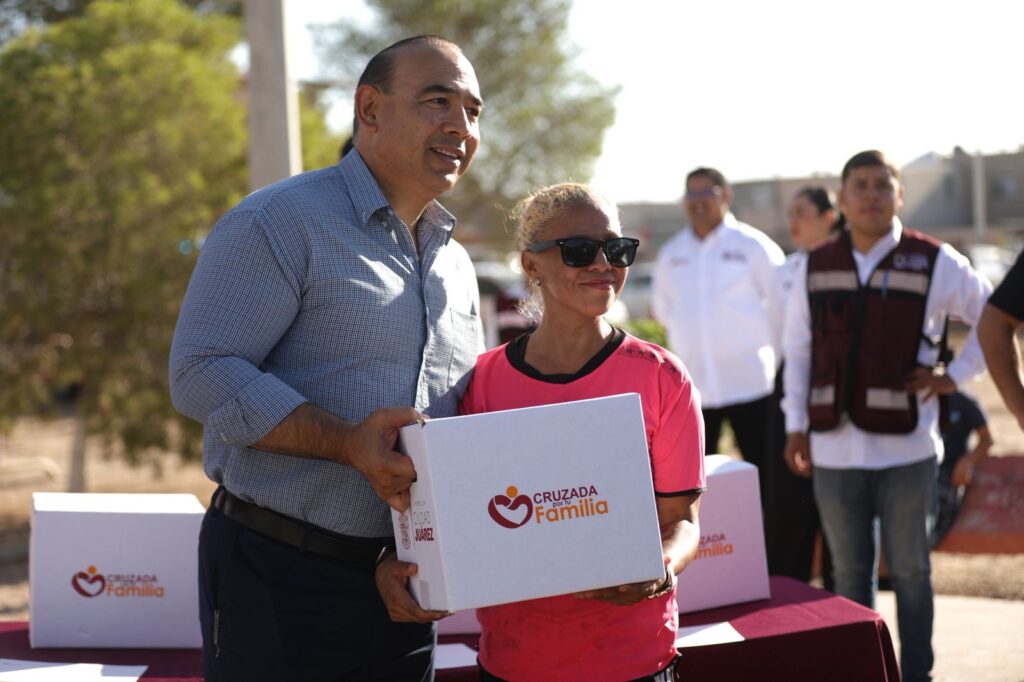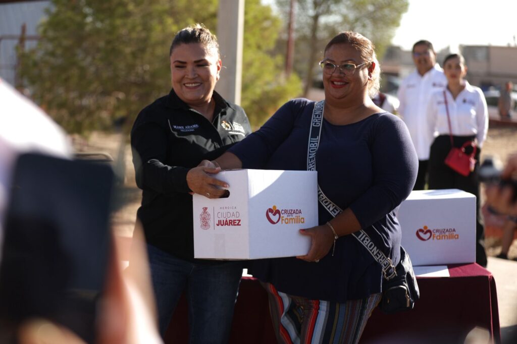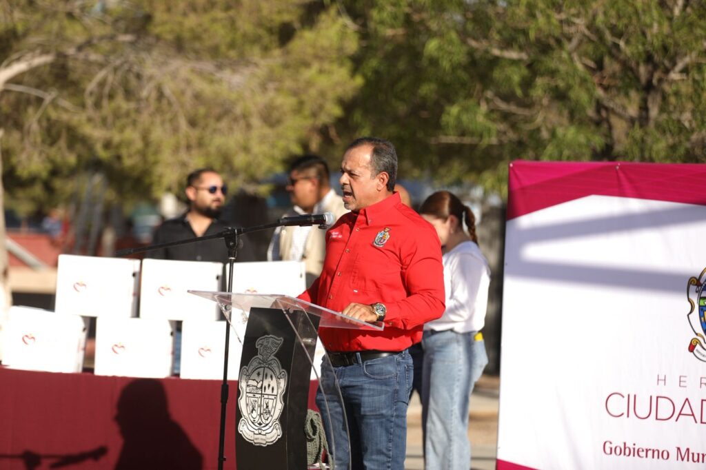 Durante el evento, el Presidente Municipal Cruz Pérez Cuéllar realizó la primera entrega simbólica, “Aquí vamos a seguir atentos como lo hacemos todos los días, trabajando por y para Juárez”, señaló.