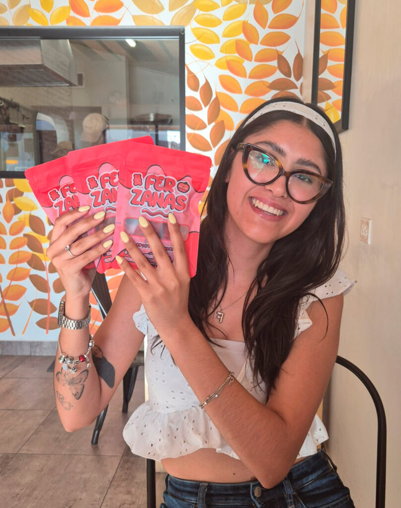 Lo que comenzó como un intento de ahorrar para comprar un automóvil, terminó convirtiéndose en un negocio local de dulces con identidad propia. Fernanda Quiñones, de 25 años, es la mente y el corazón detrás de Fer-Zanas, una marca juarense especializada en gomitas enchiladas y manzanas cubiertas con tamarindo que ha logrado abrirse camino a través del ingenio, la constancia y una estética pensada hasta en el más mínimo detalle.