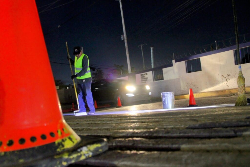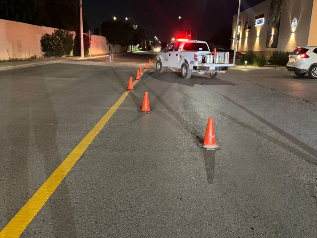 La Coordinación General de Seguridad Vial continúa con labores de mantenimiento en distintas vialidades de la ciudad, realizando trabajos nocturnos para evitar afectaciones al tránsito diario.