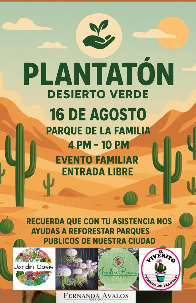 El próximo sábado 16 de agosto será la nueva edición del Plantatón: Desierto Verde, el cual tiene el enfoque de reconocer que Juárez es un desierto, el cual buscan enverdecer con consciencia ambiental e información adecuada sobre las especies aptas para un desierto.