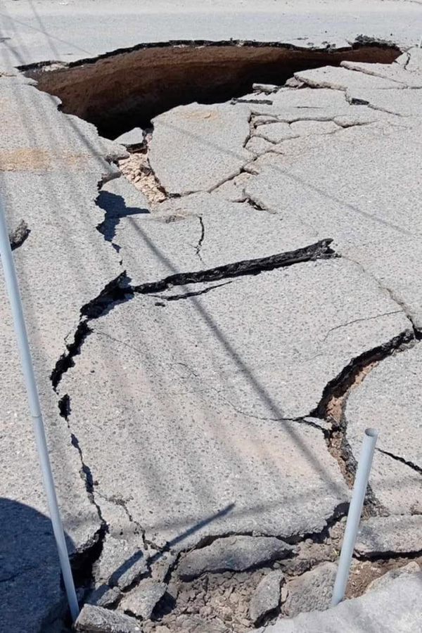 Una usuaria de redes sociales envió imágenes a Juárez Digital, denunciando que el daño representa un riesgo para los conductores, ya que esta misma tarde un camión cayó en el hoyo y quedó atorado.