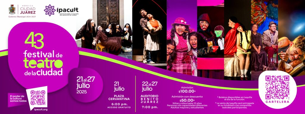 Todas las funciones serán a las 7:00 de la tarde en el Auditorio Benito Juárez, y tendrá un descuento para niñas, niños, estudiantes, personas mayores y con alguna discapacidad, este festival es un recordatorio para continuar apoyando el talento juarense mediante el arte.