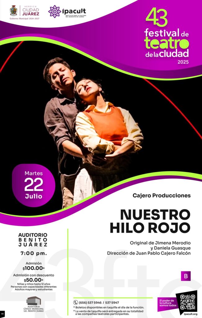 La cartelera de esta edición varia desde adaptaciones de clásicos infantiles hasta propuestas originales y contemporáneas, todas interpretadas por el talento juarense, en los que podrás encontrar Sor Tenis, de Jesús Blake en Plaza Cervantina con función gratuita este lunes, Nuestro Hilo Rojo, de Jimena Merodio y Daniela Guasque, La peor señora del mundo, de Francisco Hinojoza, entre otras más adaptaciones.