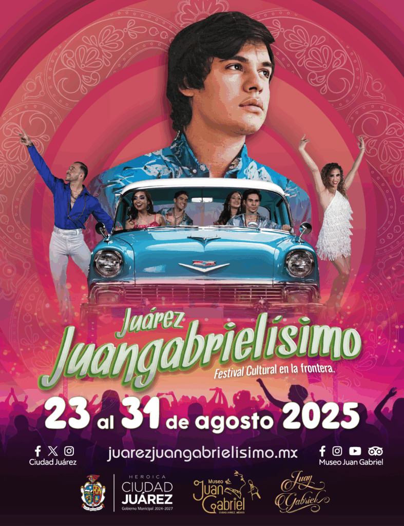 Del 23 al 31 de agosto, las calles de Ciudad Juárez homenajearán a Juan Gabriel con espectáculos, concursos y eventos deportivos para recordar el legado del cantautor juarense.