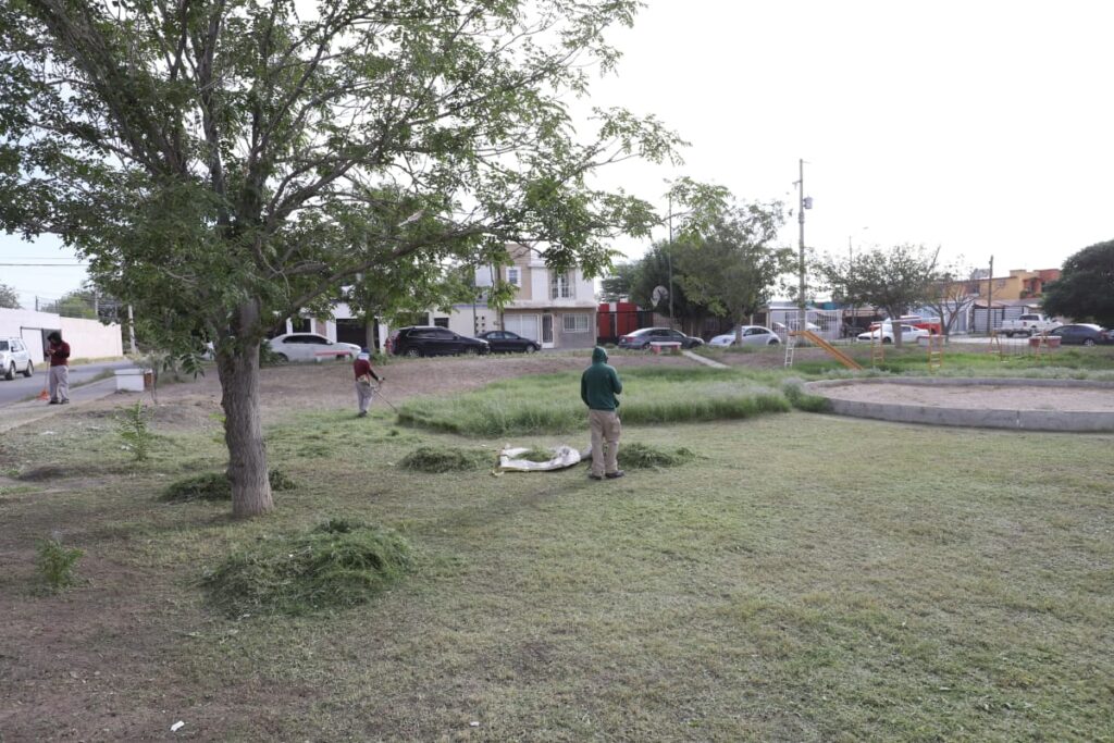 Personal de la Dirección de Parques y Jardines realizó labores de mantenimiento en un área verde del fraccionamiento Nuevo Milenio, ubicada entre las calles Valle Siglo XXI y Valle de las Palmas.