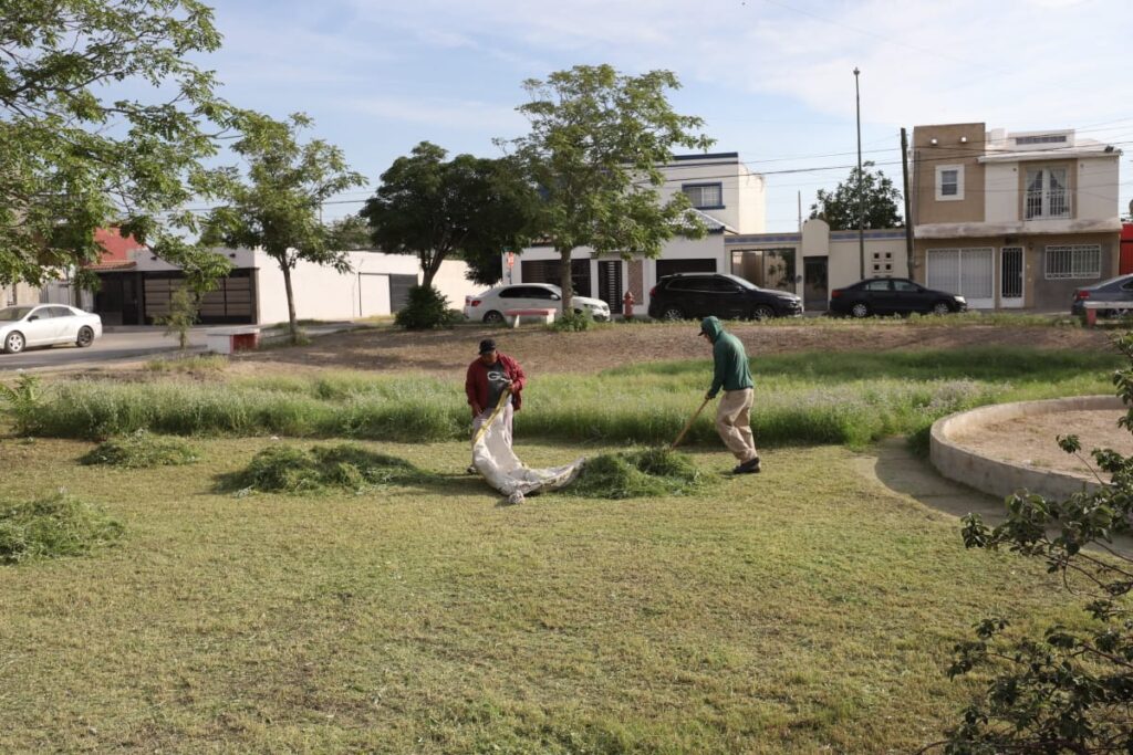 Los trabajos incluyeron limpieza general, corte de hierba, poda formativa de árboles y retiro de residuos vegetales, como parte de los esfuerzos por conservar en buen estado los espacios públicos de la ciudad.