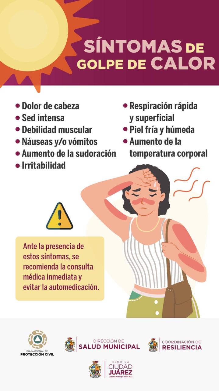 La funcionaria advirtió que síntomas como mareos, debilidad muscular, náuseas, vómito o aumento de la temperatura corporal podrían ser señales de un golpe de calor, por lo que se debe acudir de inmediato al médico y evitar la automedicación. En caso de emergencia, se debe llamar al 911.