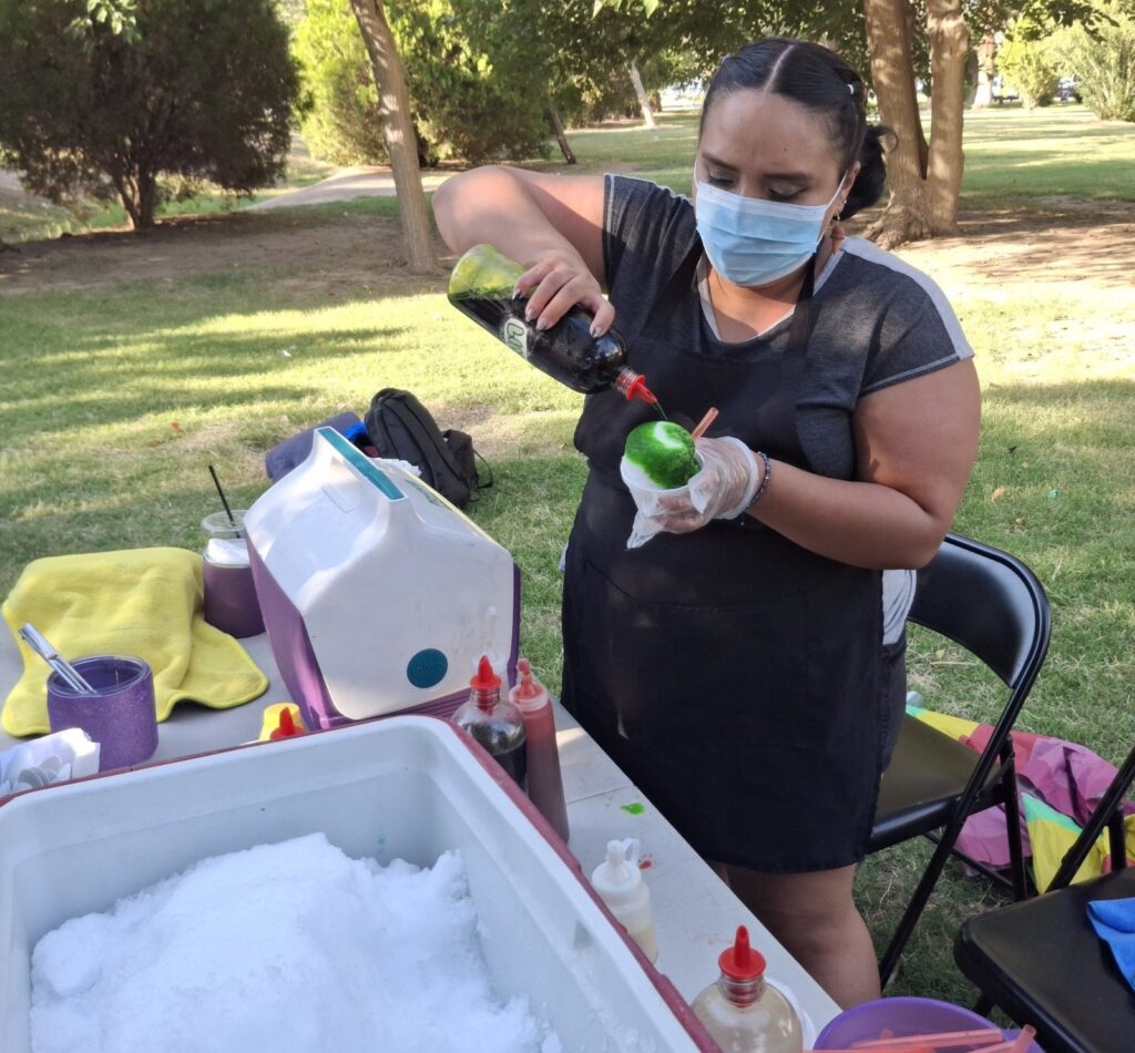 “En su mayoría en eventos, en ocasiones cuando me siento bien me pongo a vender afuera de mi casa las raspas y las cosas qué la gente me dona, pero no es fijo como tal, ya que en ocasiones el dolor de espalda es muy fuerte o tengo citas y quimio, así que descanso, pero los eventos sí o sí los programo y asisto en compañía de mi familia, ya sea mi mamá o mis hermanos”, comenta Grisel.