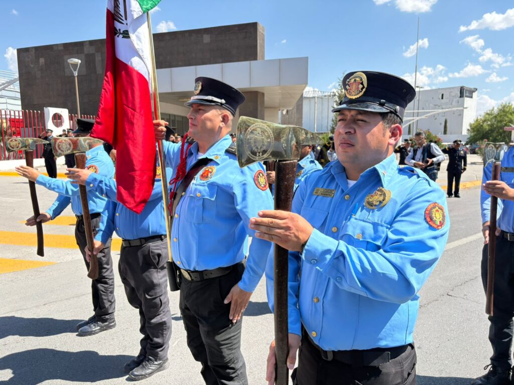 Elementos del Departamento de Bomberos de Ciudad Juárez rindieron homenaje este viernes a sus compañeros que perdieron la vida