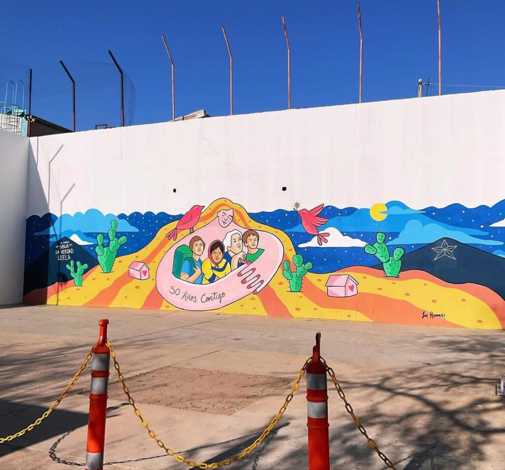 La Homs es una artista juarense que usa su arte para transformar espacios de su trabajo con murales, estos se encuentran en toda la ciudad, desde la colonia Campestre Virreyes y hasta en el Centro Cultural Paso del Norte.