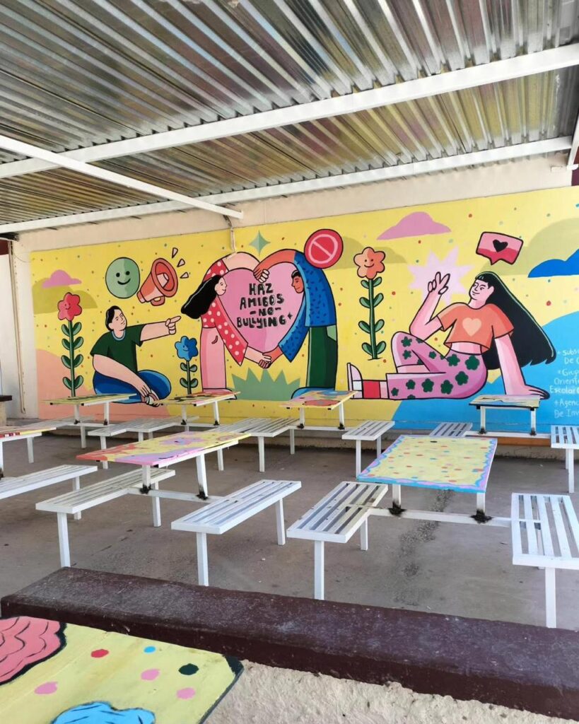 “Me gusta esta capacidad que tiene la pintura de transformar los espacios, siempre priorizo esta parte de llegar a un muro, ver en que condiciones está, ver cómo se va transformando con el color o con la idea que se busca transmitir”, comenta para Juárez Digital.